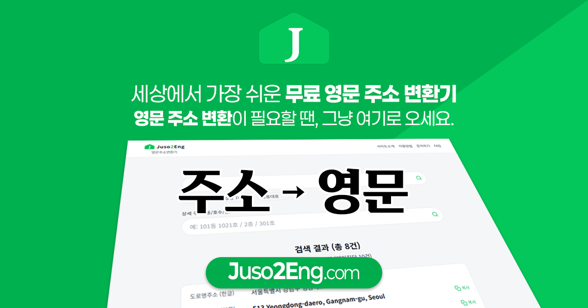 Juso2Eng - 무료 영문주소변환기(주소영문변환기) | 한국주소 → 영어주소