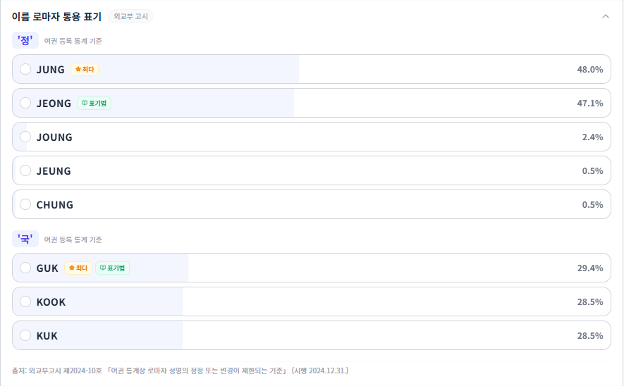 내 이름의 가장 정확하고 안전한 영문 표기, 1초 만에 확인하기