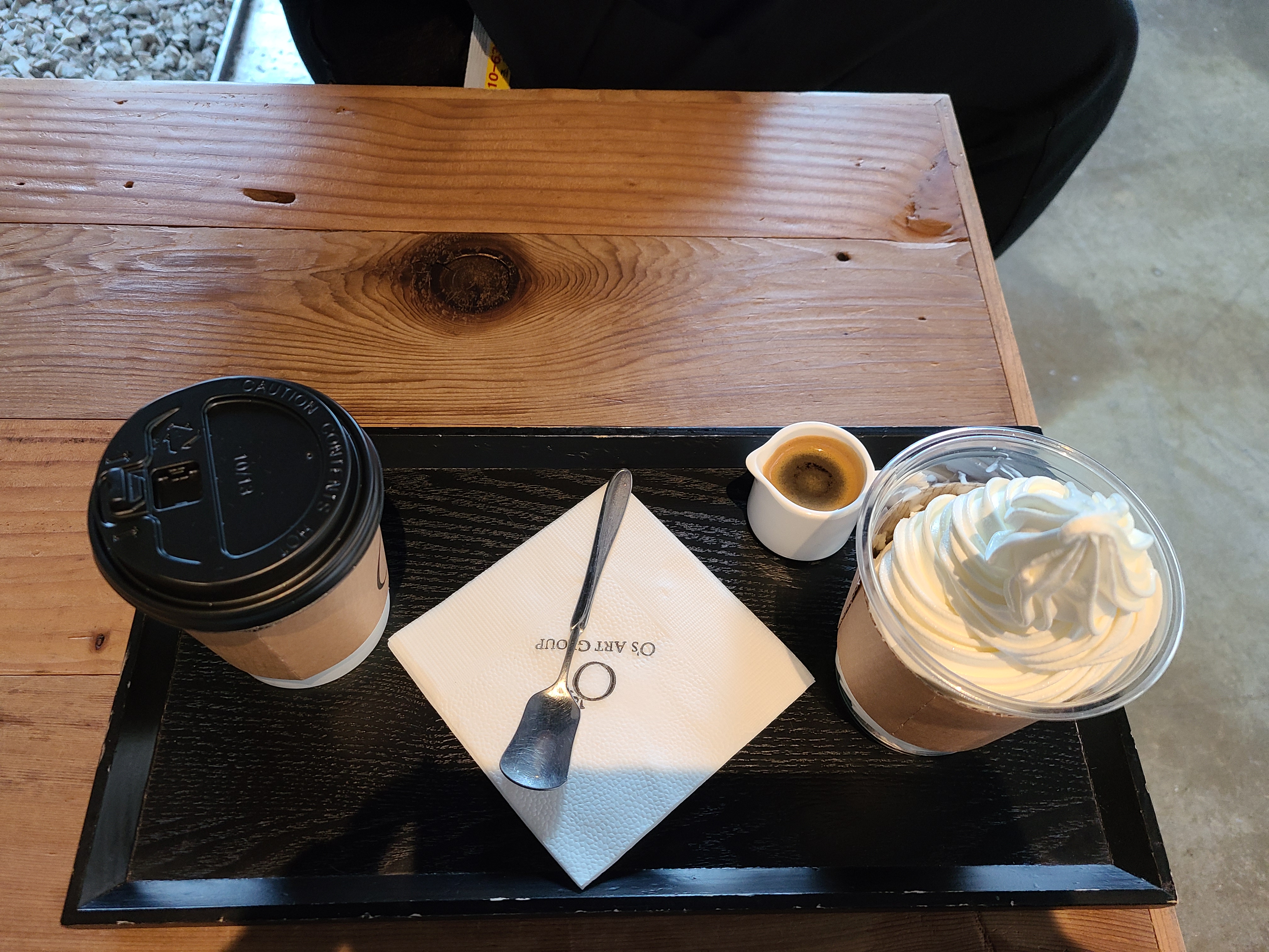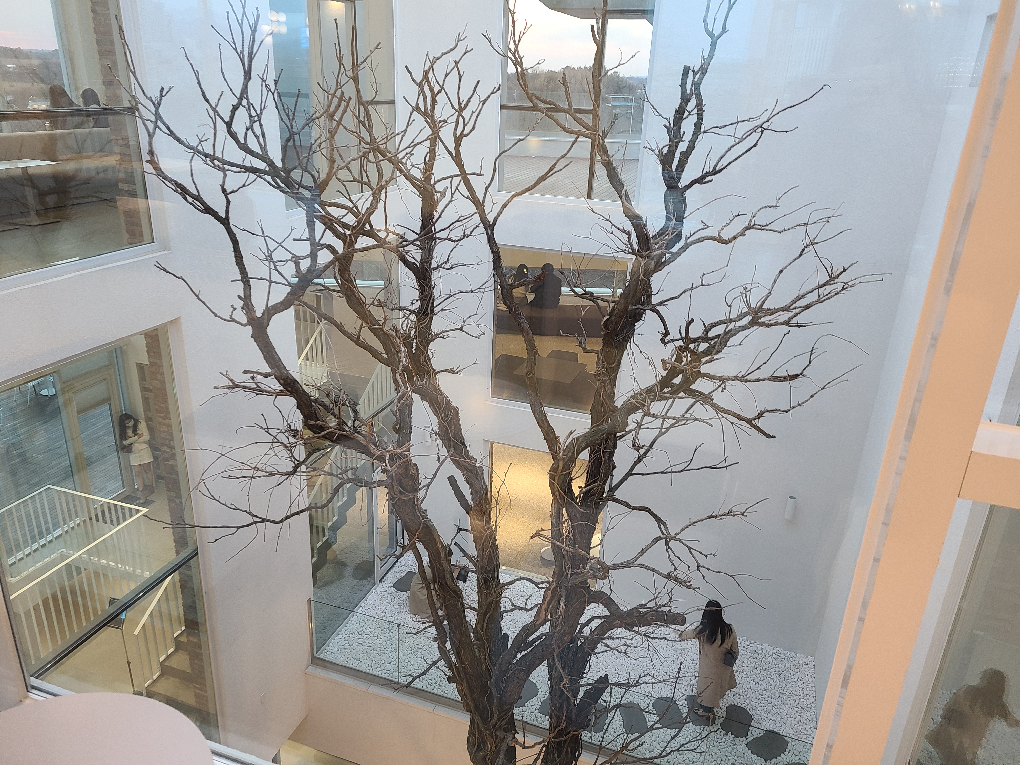 식사를 마친 후 커피를 마시기 위해 주변의 오스갤러리로 향했다. 개인적으로 오성제 나무에서 인생 샷을 남기고 싶었지만 우리 집 식구가 춥다며 눈으로만 보자는 설득에 못 이겨 카페 안으로 바로 들어갔다. 카페에 들어서자 마자 인스타에서 많이 본 장소가 눈에 들어왔다. 정신없이 사진을 찍고, 음료를 주문하고 자리를 잡았다. 카페 곳곳의 인테리어가 예뻤고, 멍 때리기에 좋은 공간이라는 생각이 들었다.