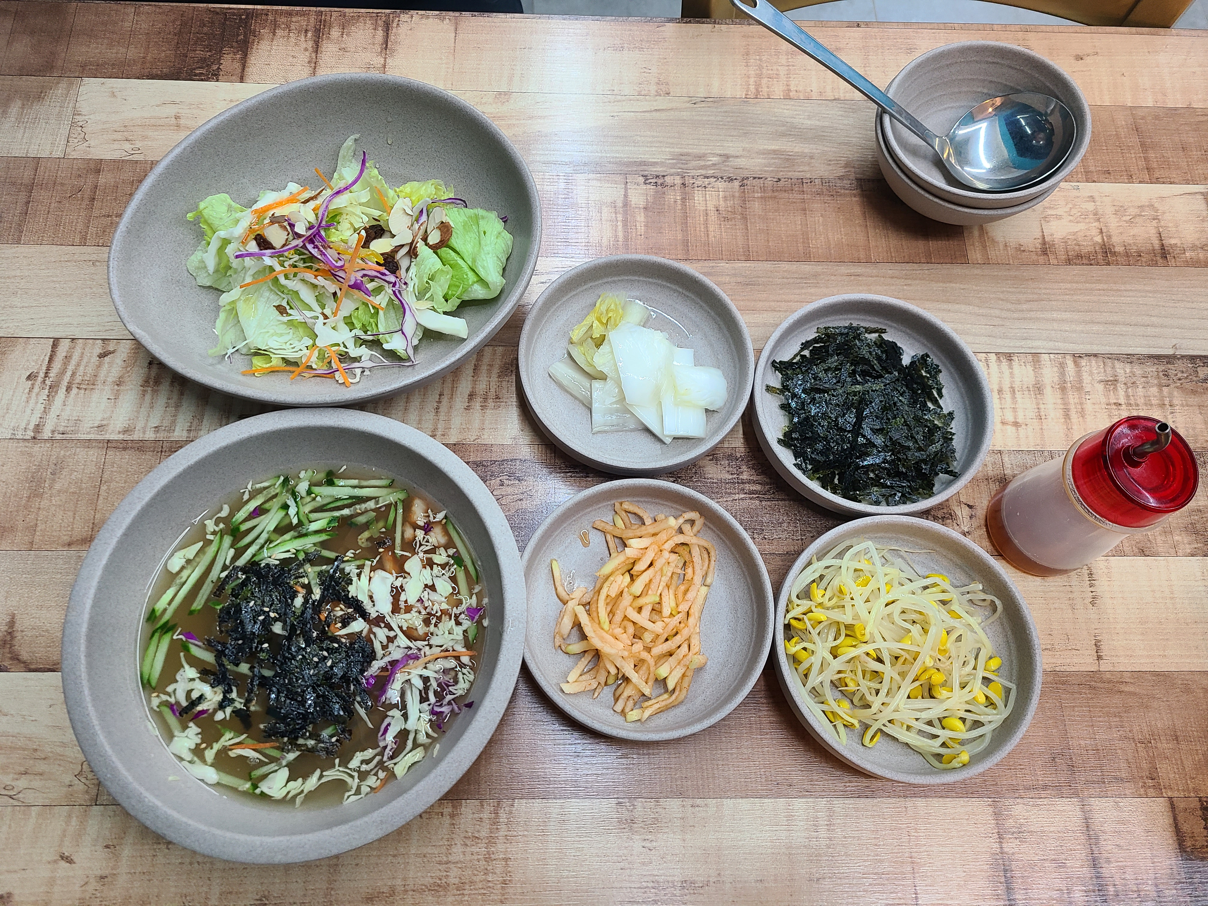 편백나무 숲 산책을 마치고 돌아와 짐을 챙겨 원조화심순두부로 아점을 먹으러 갔다. 완주에서 방문했던 곳 중 가장 많은 사람을 구경한 곳이 아닌가 싶다. 식당의 규모는 상상 이상이었다. 우리 집 식구는 어린시절 예식장 피로연 장에 온 것 같다고 했다. 자리에 앉자 마자 정신없이 주문을 했다. 손 두부 한 모와 화순 순두부, 바지락 순두부를 주문했다. 배도 고팠지만 손 두부의 맛은 정말 최고였다. 식당에서는 한 모에 5,000원이나 포장 시에는 3,000원이었다. 화순 순두부와 바지락 순두부 안의 순두부 양이 굉장히 많았다. 돼지고기를 좋아하지 않는 나는 바지락 순두부를 시켰지만 시그니처인 화순 순두부의 맛이 개인적으로는 더 입맛에 맞았다. 식사를 마치고 두부 2모와 두부 도넛도 구매했다.