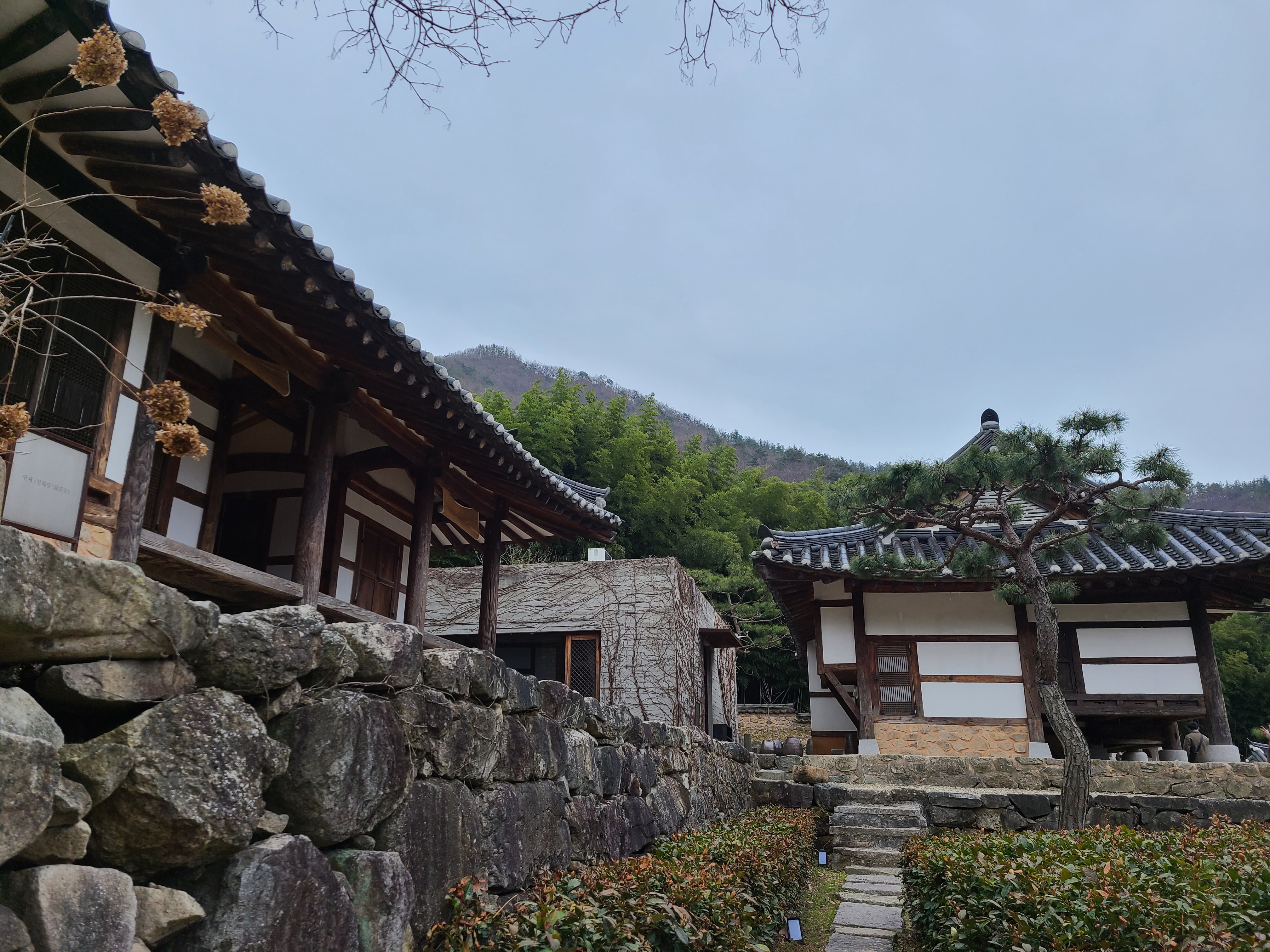 이쯤 되니 우리 집 식구와 나의 에너지가 바닥을 치고 있었다. 오스갤러리에서 휴식을 취했지만 이제는 집으로 돌아가고 싶다는 생각이 들었다. 그럼에도 아원은 꼭 가보고 싶었다. 입장료 10,000원을 내고 들어서니 가장 먼저 갤러리가 눈에 띄었다. 아원과 오스갤러리는 오스아트그룹에서 운영하는 곳이라는 사실을 갤러리에 들어서서 알게 되었다. 갤러리 맞은 편에는 카페가 있었고 카페를 지나 외부로 이어지는 계단을 올라가니 한옥 스테이가 가능한 아원 고택이 눈에 띄었다. 시간이 지나 다시 방문해보고 싶을 것 같다는 생각이 들었다. 이 때부터 비가 오기 시작했고 우리 집 식구와 대청 마루에 앉아 오미자 차를 나눠 마셨다. 쉽게 그칠 비가 아닌 것 같아 이쯤에서 일정을 정리하기로 했다.