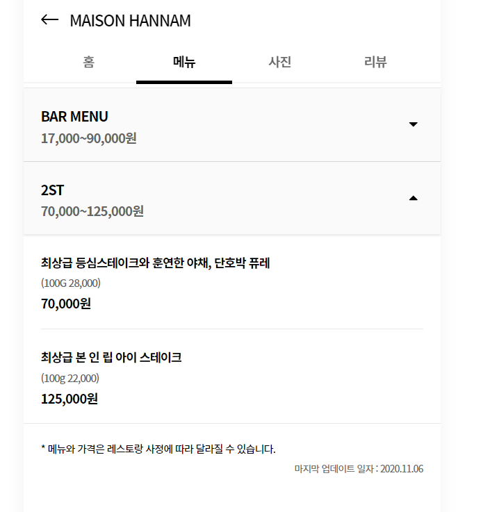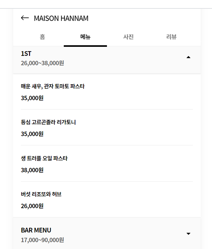 예약: app.catchtable.co.kr/ct/shop/maisonhannam