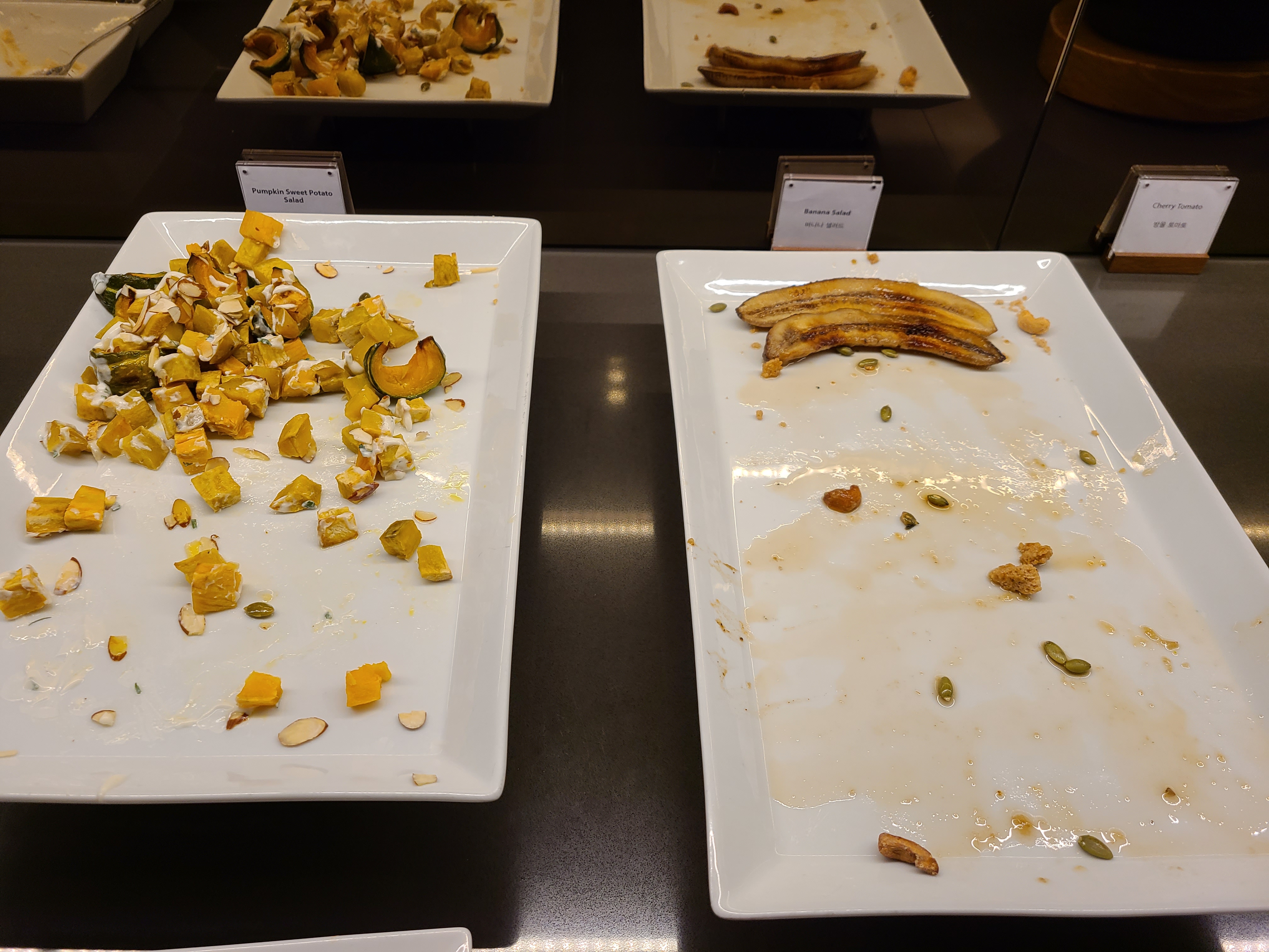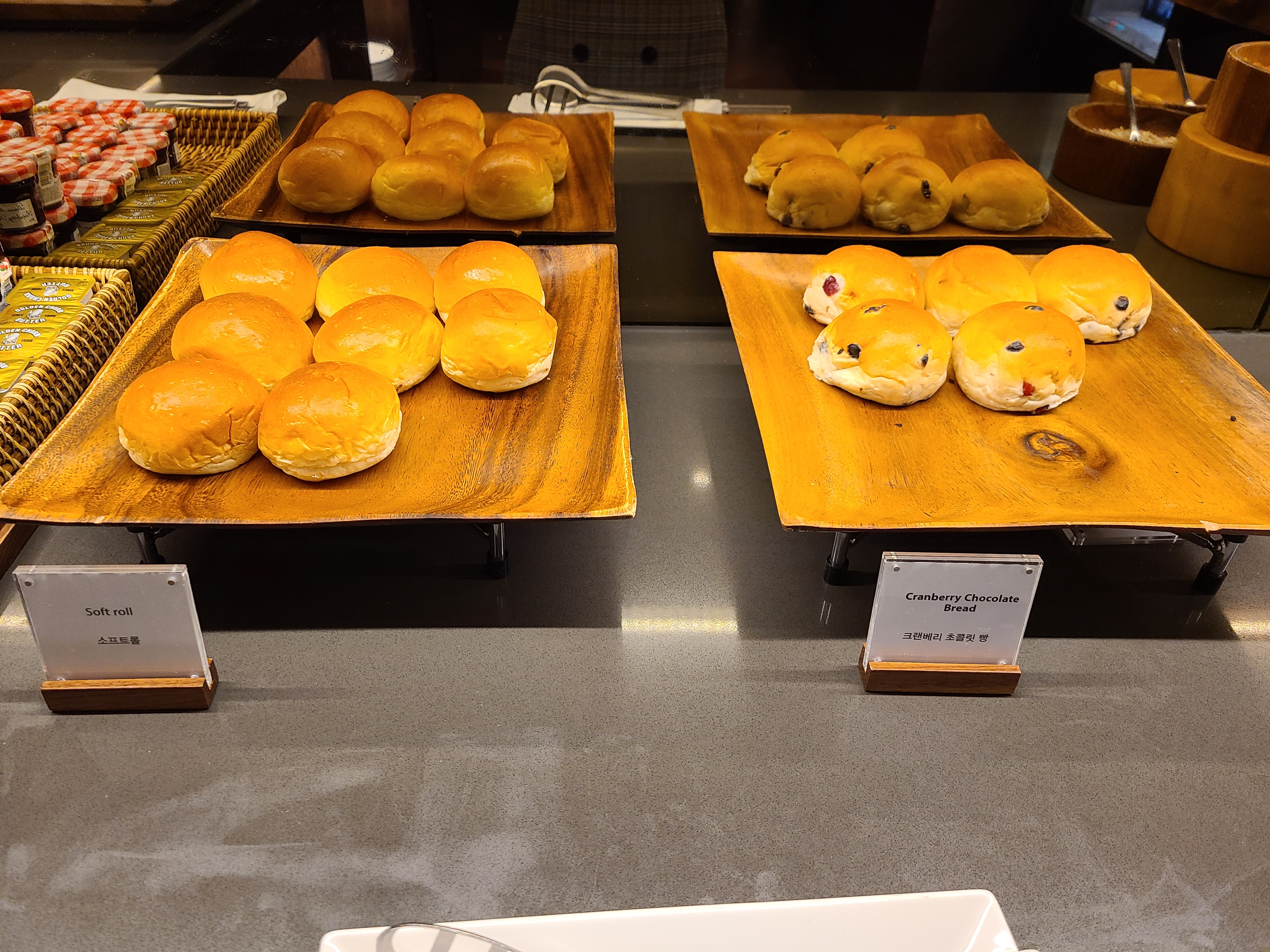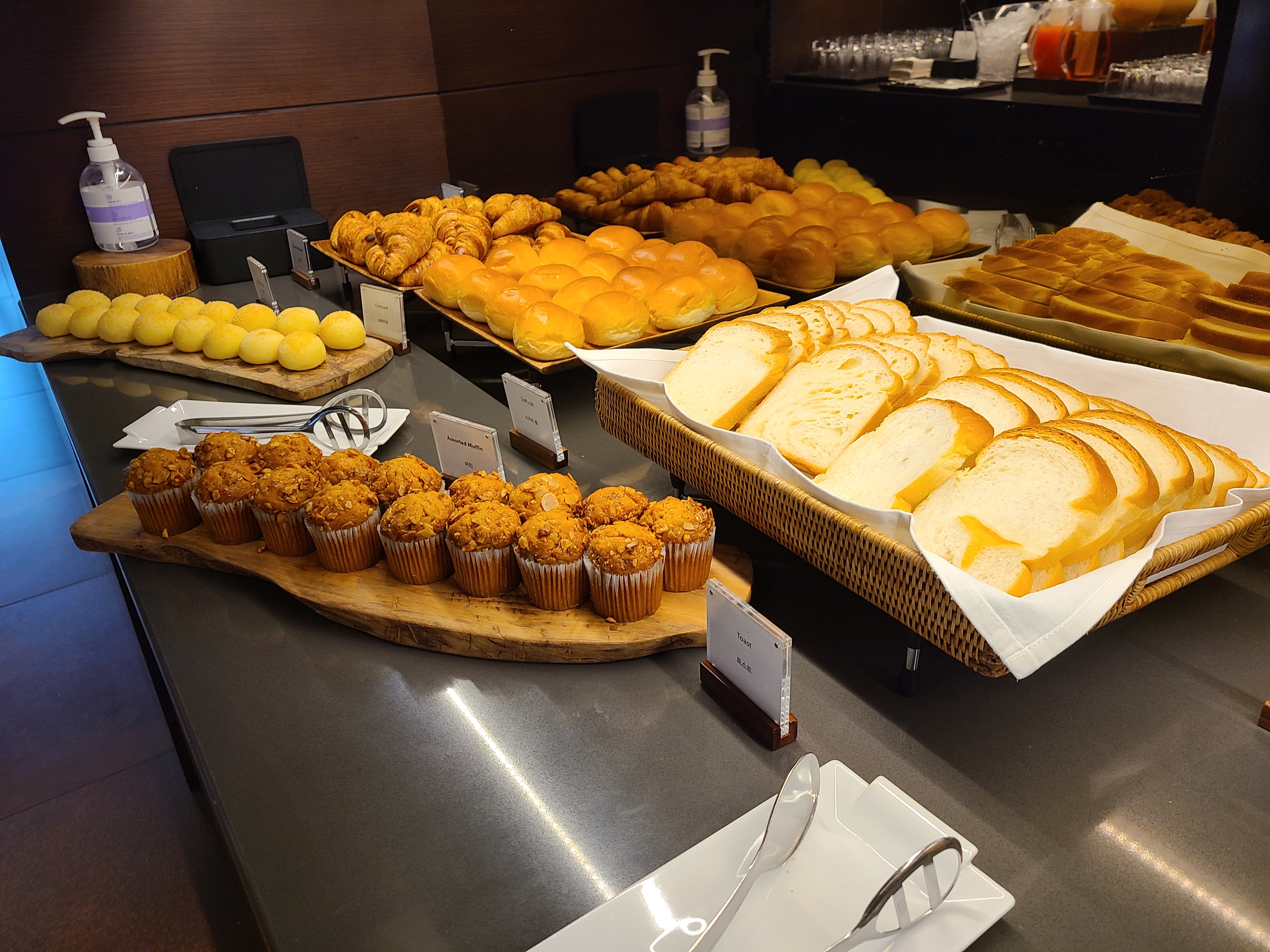 로비가 넓거나 화려하지는 않았지만 조용하고 고급스러운 분위기가 느껴졌다. 체크인 시간이 늦어서인지 대기 인원도 없었고 여유롭게 서비스 안내를 받을 수 있었다. 애프터눈티를 즐기기 위해 점심도 먹지 않고 호텔에 왔는데 애프터눈티 종료 시간이 30분 밖에 남지 않아 안내를 들으며 마음이 다급 해졌다. 코로나로 인해 클럽라운지, 수영장, 사우나 이용 정책이 상시 변경되기에 수영장을 이용이 제한되지 않을까 걱정했는데 다행히 우리가 방문한 기간에는 수영장 이용이 가능했다. 30분 남은 시간 동안 우리 집 식구와 나는 캐리어를 들고 라운지를 방문해 빵과 과일, 음료를 폭풍 흡입했다. 배고픔이 민망함을 이기는 순간이었다.