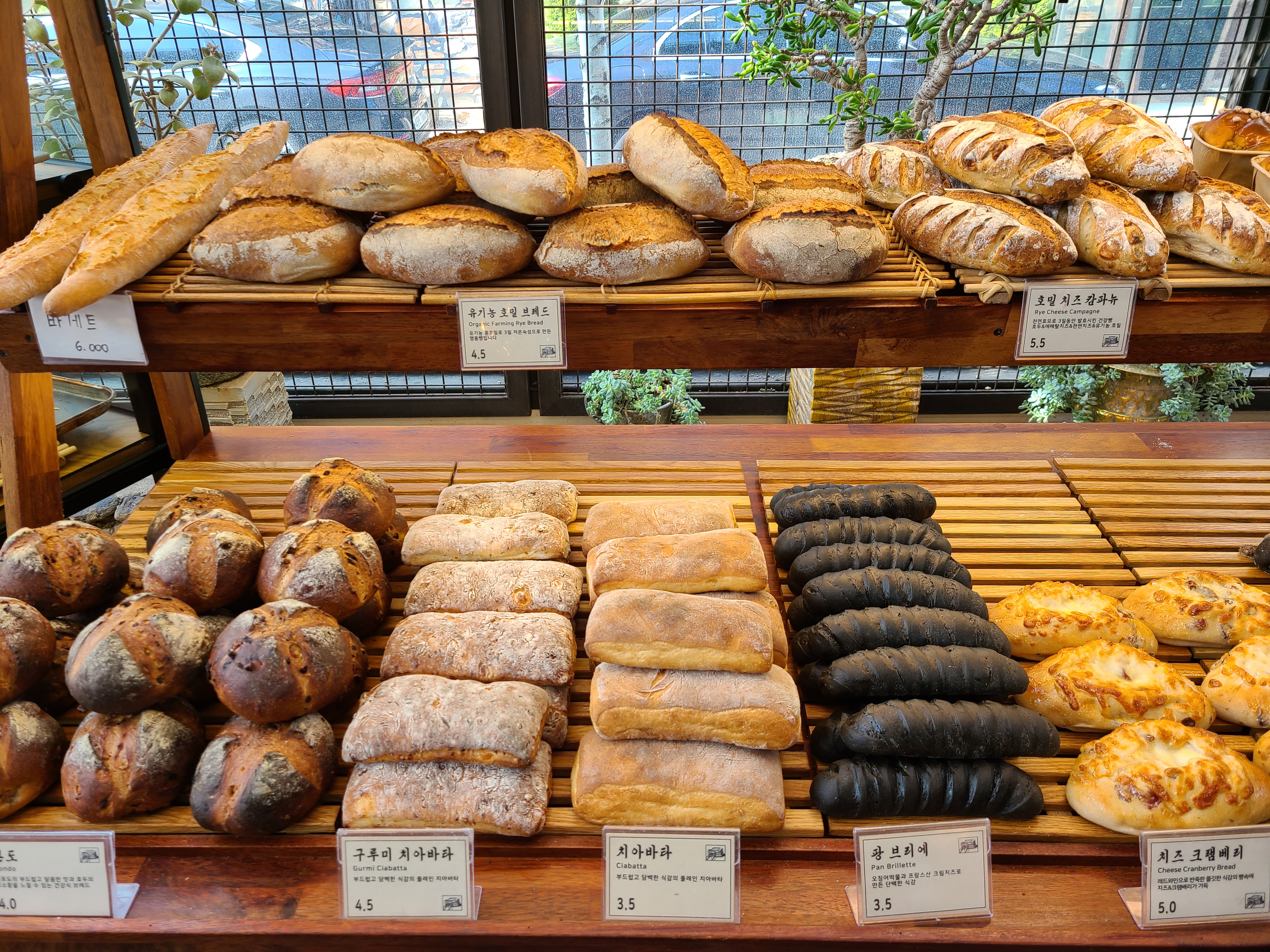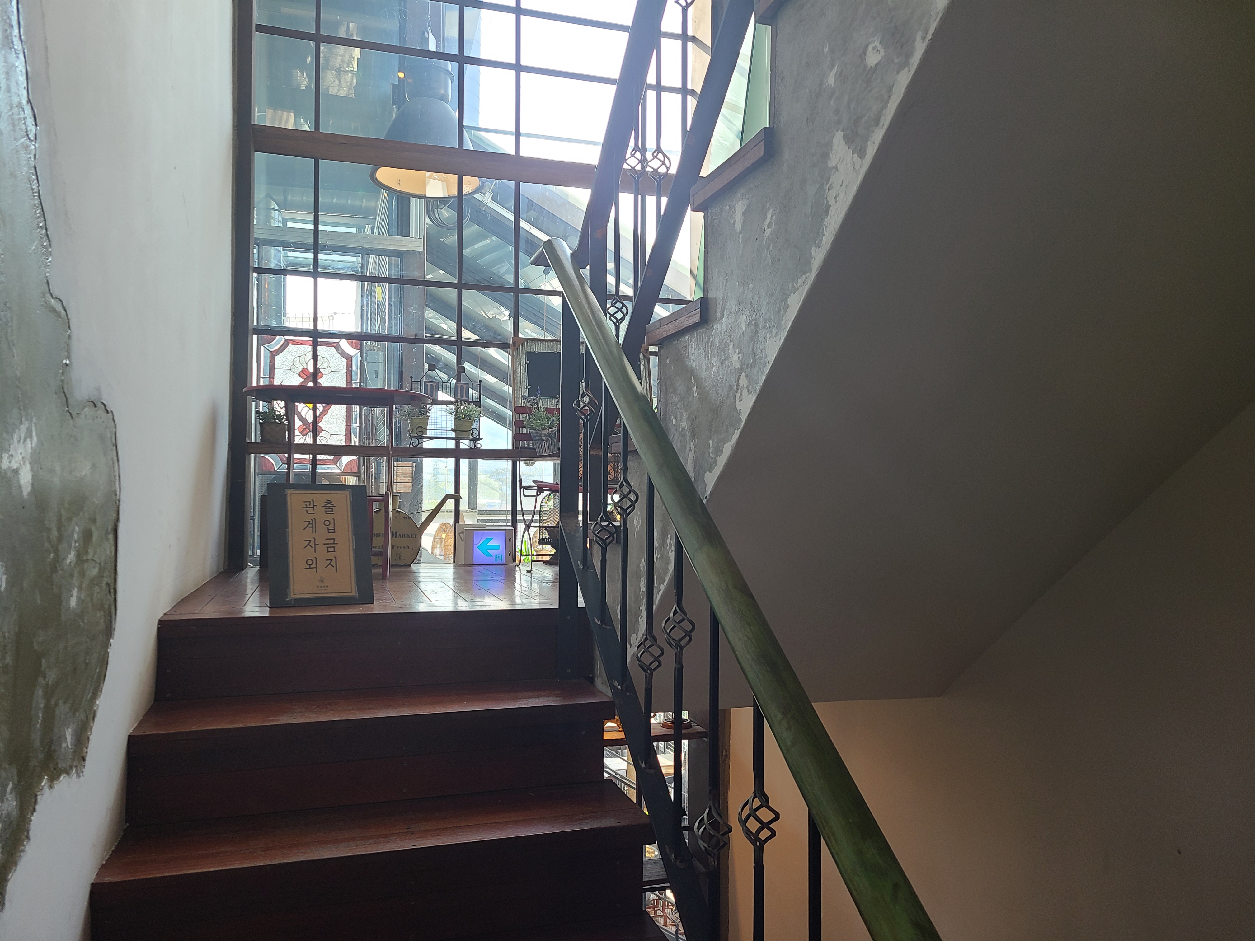빵과 음료를 주문하기 전 우리 집 식구와 카페를 돌아보기로 했다. 온실 같은 카페 안으로 들어가니 테이블이 곳곳에 놓여있었다. 생각보다 사람이 많지 않았고, 테이블이 워낙 많아 카페 안에서 빵과 음료를 먹어 보기로 했다. 1층이 내려다보이는 곳에 자리를 잡고 빵과 음료를 주문하기 위해 1층으로 이동했다.