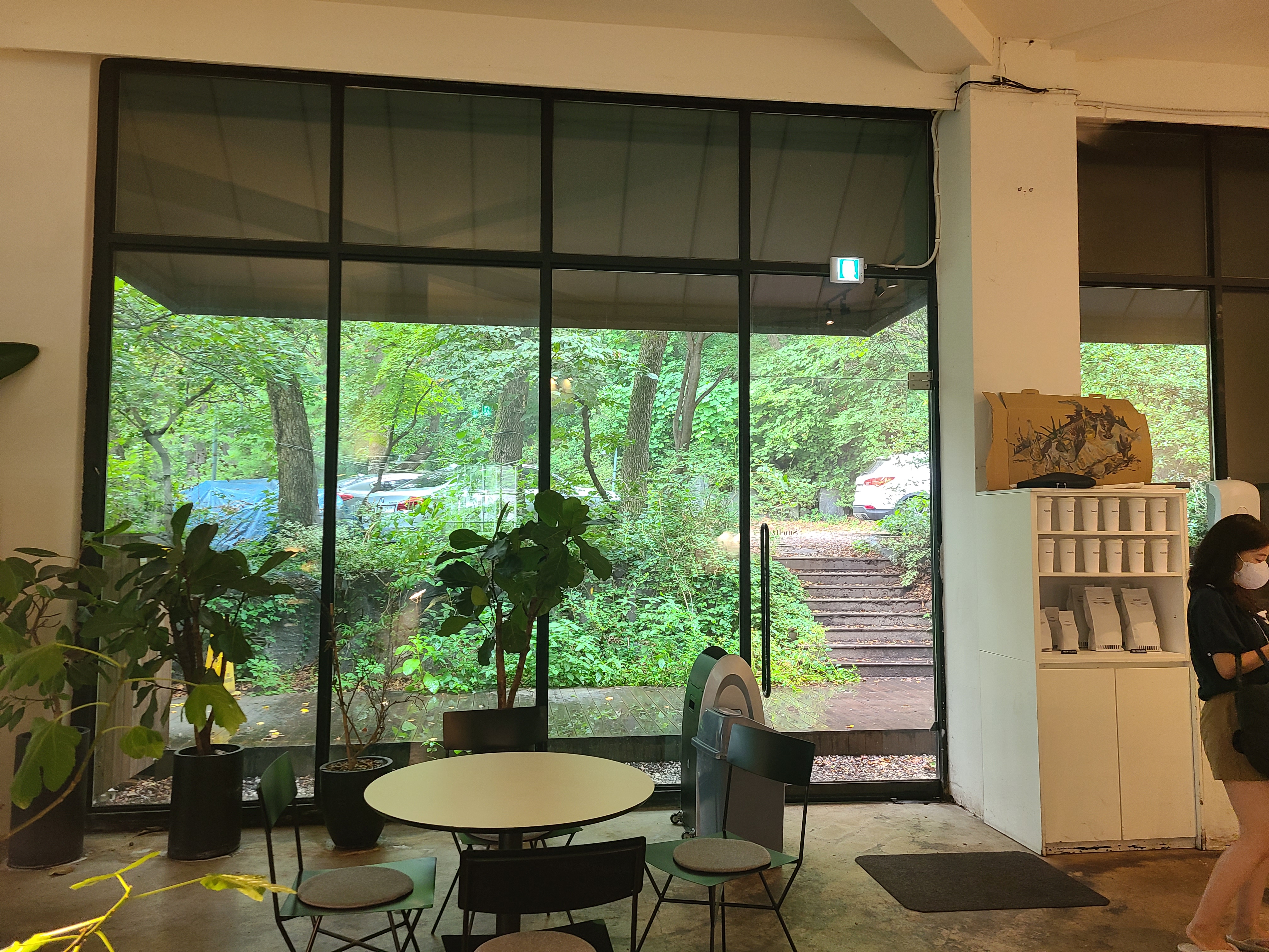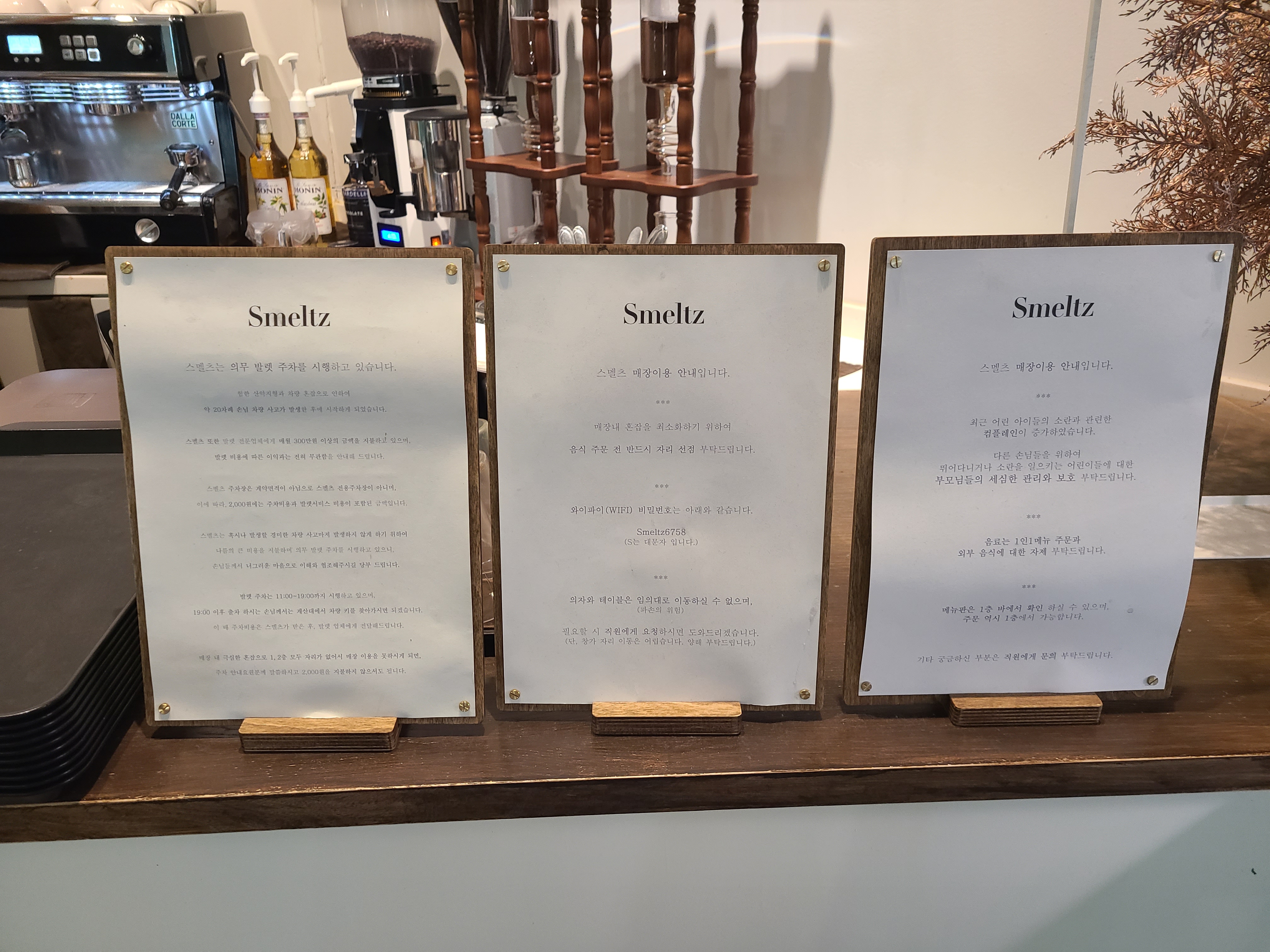 카페에 도착하니 아직 문이 잠겨 있는 것 같았다. 카페 문 앞에서 어리둥절하고 있으니 문을 열어주셨다. 신상 카페가 아니라 건물이 오래된 느낌이 있었지만 스멜츠 만의 초록 초록한 분위기가 느껴져 입장부터 힐링이 되는 느낌이 들었다.