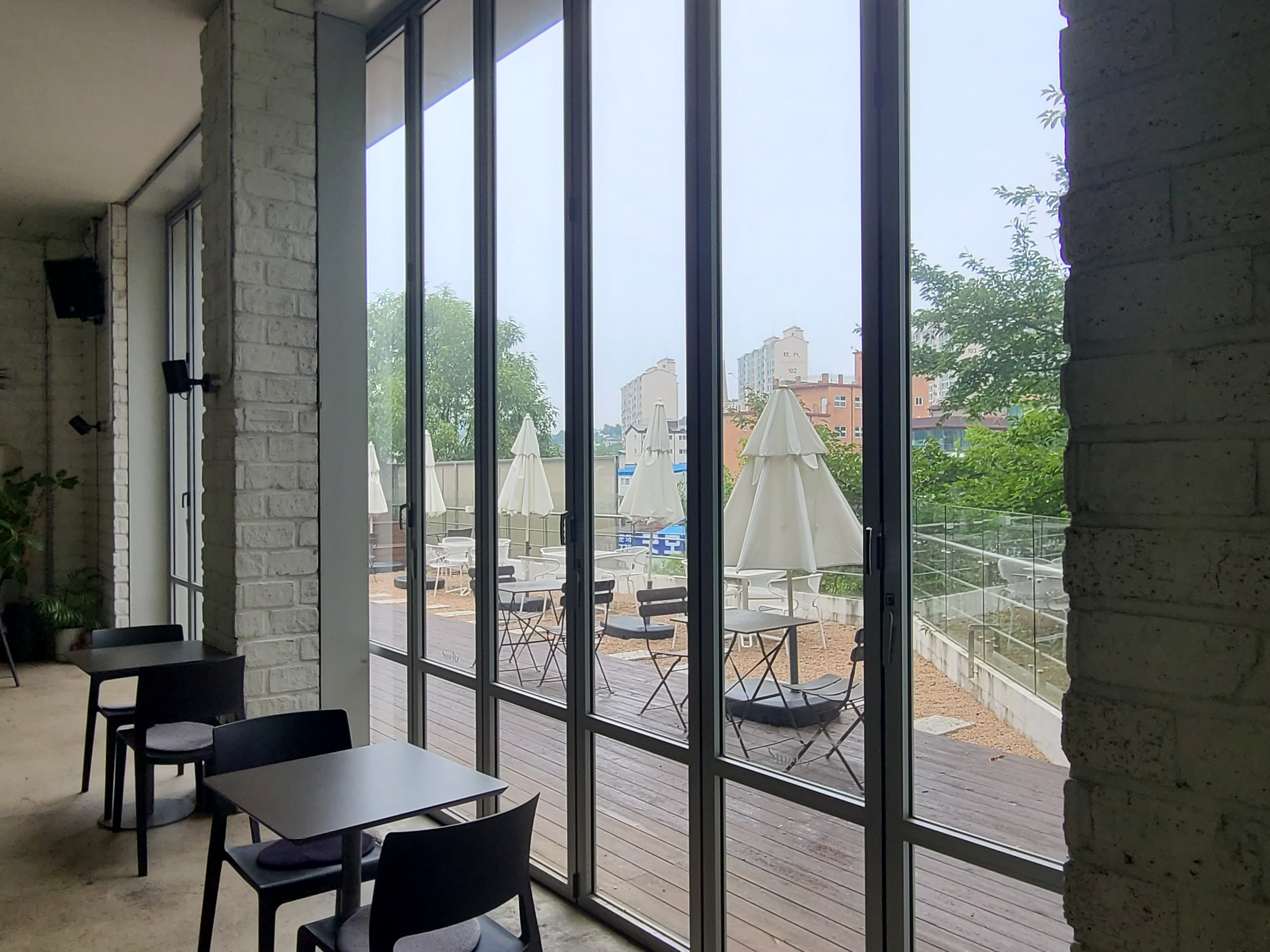 이때는 몰랐다. 우리가 앉은 자리가 그렇게 인기 있던 곳이라는 것을 1층에 남은 나는 커피와 브런치 메뉴를 주문했다. 가격은 저렴한 편은 아니다. 맛과 양을 모두 생각했을 때 음료만 주문했다가 베이커리 류를 주문하는 게 나을 뻔했다는 생각을 했다. 2층에 올라 간 순간 통유리의 푸릇푸릇 한 숲을 볼 수 있다는 것만으로 정말 잘 왔라는 생각을 반복했다. 우리 집 식구와 각자 시간을 가지며 커피를 마시고 있으니 여유와 휴식이 이런 거구나라는 생각이 들었다. 그렇게 20분 정도 시간이 지나고 음식이 나왔다.