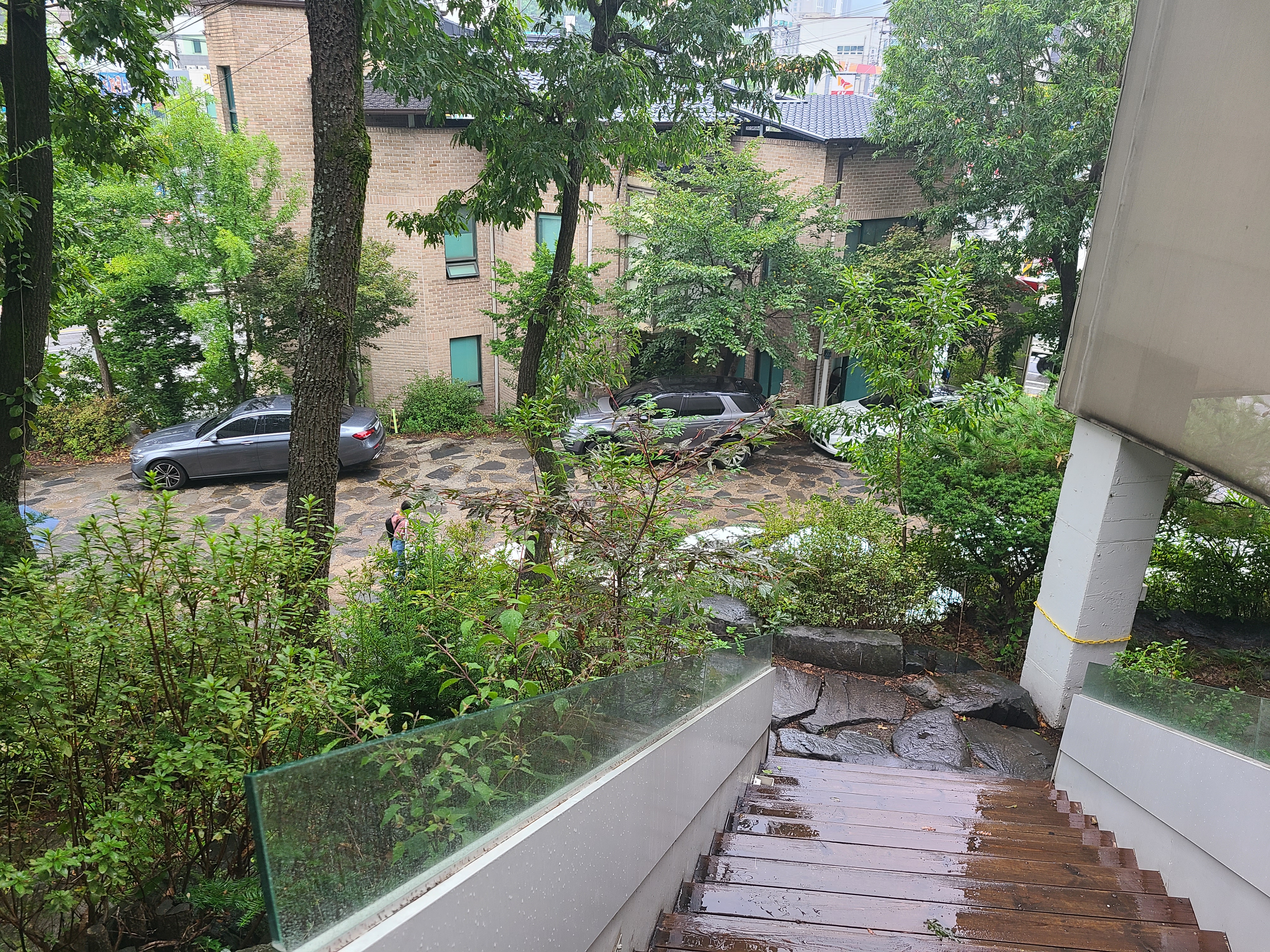 가을장마로 며칠 비가 내리니 선선해지던 어느 날 경기도 광주 카페 '스멜츠'로 우리 집 식구와 데이트를 다녀왔다. 인스타를 보면 경기도 광주 가볼 만 한 곳에 늘 이름을 올리는 유명 카페인 '스멜츠', 카페에 앉아 통유리 너머로 푸릇푸릇 한 숲과 쏟아지는 비를 볼 생각에 설레는 마음으로 이동했다. 카페 근처에 도착하니 비가 어느 정도 잦아들었다. 내비게이션의 도착 알림에 차를 잠시 정차하고 있으니 발렛 요원이 와서 주차를 도와주었다.
