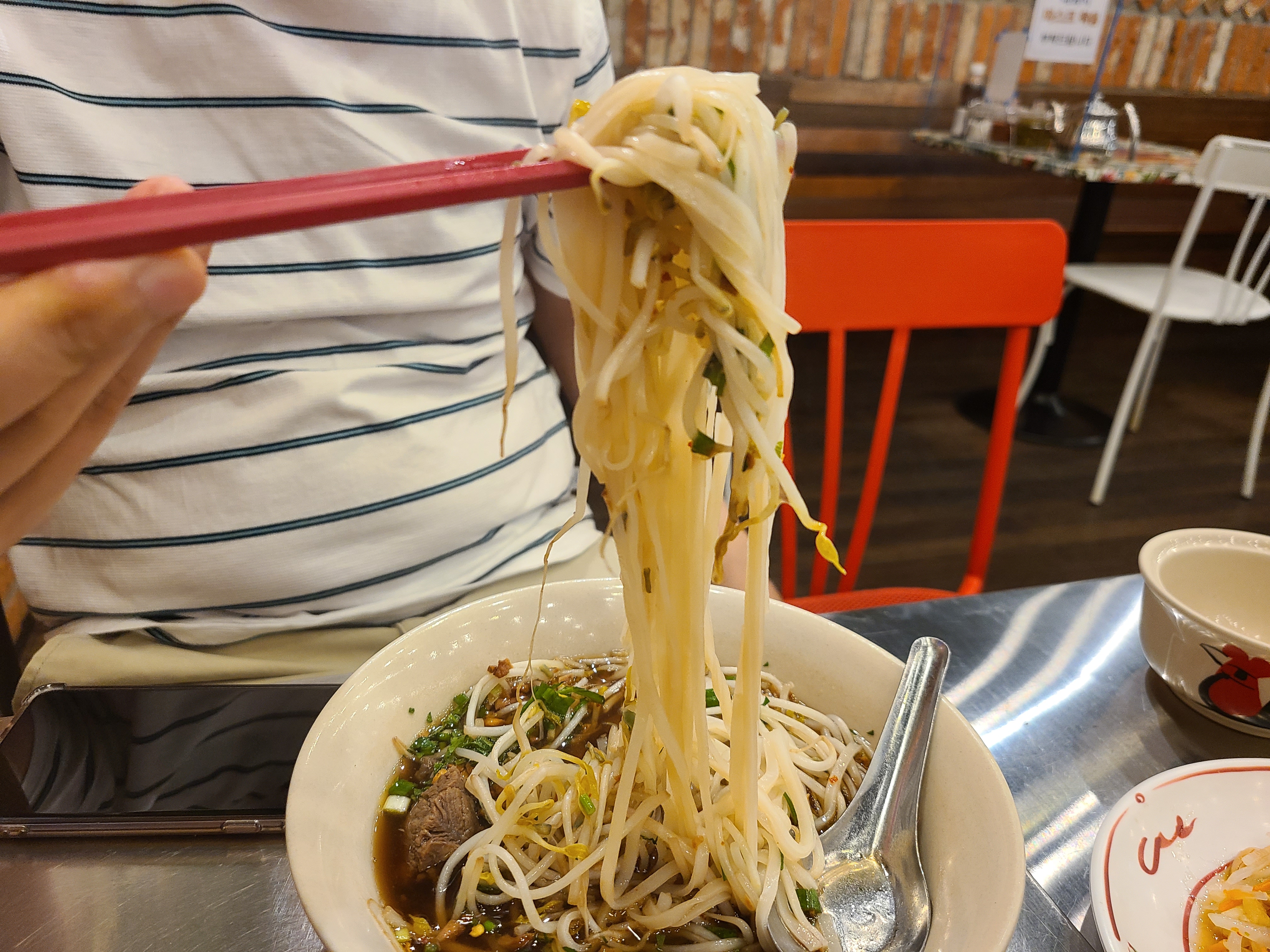 그리고 대망의 소고기쌀국수가 나왔다. 고기가 두툼하고 태국식 쌀국수 특유의 육수 맛을 맛본 우리 집 식구는 "정말 괜찮다."를 연발했다.