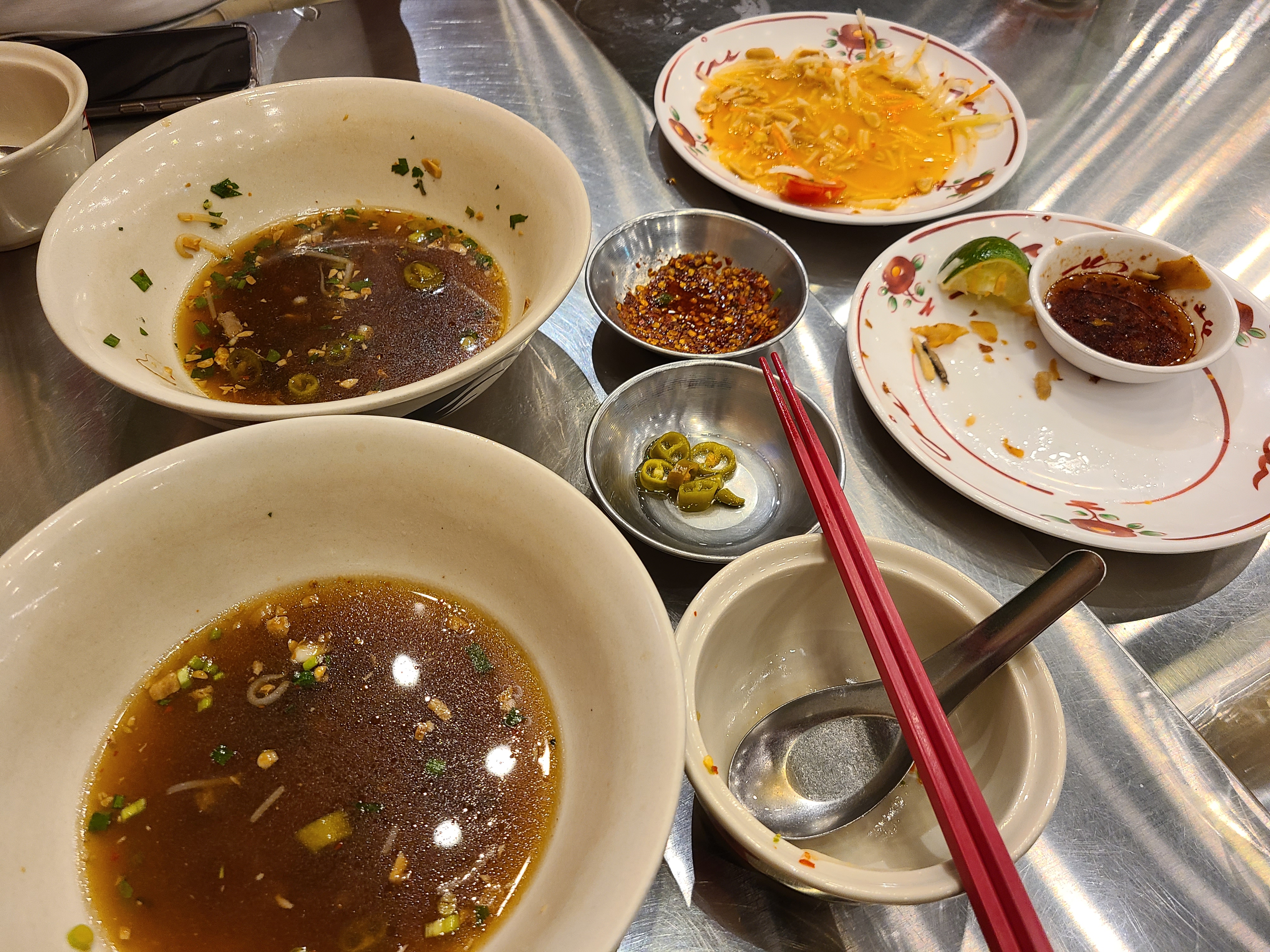 두 사람이 와서 이 많은 음식을 남기지 않고 다 먹더니(사실 우리는 둘 다 쌀국수는 대부분 L 사이즈를 주문해서 먹는다) 정말 스스로가 대단하게 느껴졌다.