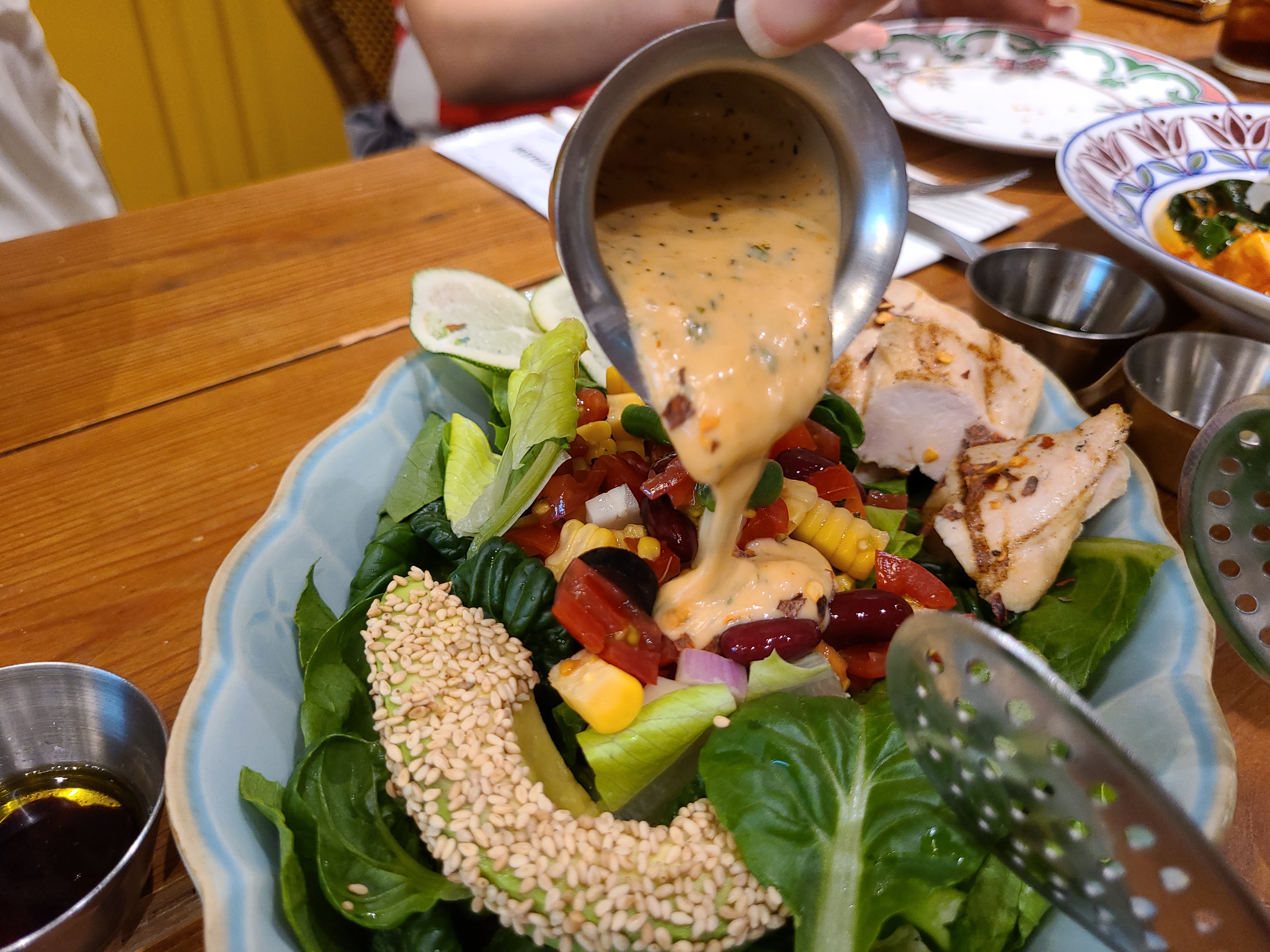 브런치 맛집이라는 소문을 듣고 왔기에 무엇을 먹을까 너무 고민이 되었다. 세트와 단품 중 고민하다가 단품을 주문하기로 했다. 우리 일행은 4명이어서 샐러드, 피자, 파스타, 리조또 하나씩을 주문하기로 했다. 샐러드 중에서 콥 샐러드, 피자는 라따뚜이 피자, 파스타 중에서는 로제 모짜렐라 페투치니, 리조또는 스테이크 리조또를 선택했다. 음료는 콜라와 콤부차 오리지널을 주문했다.