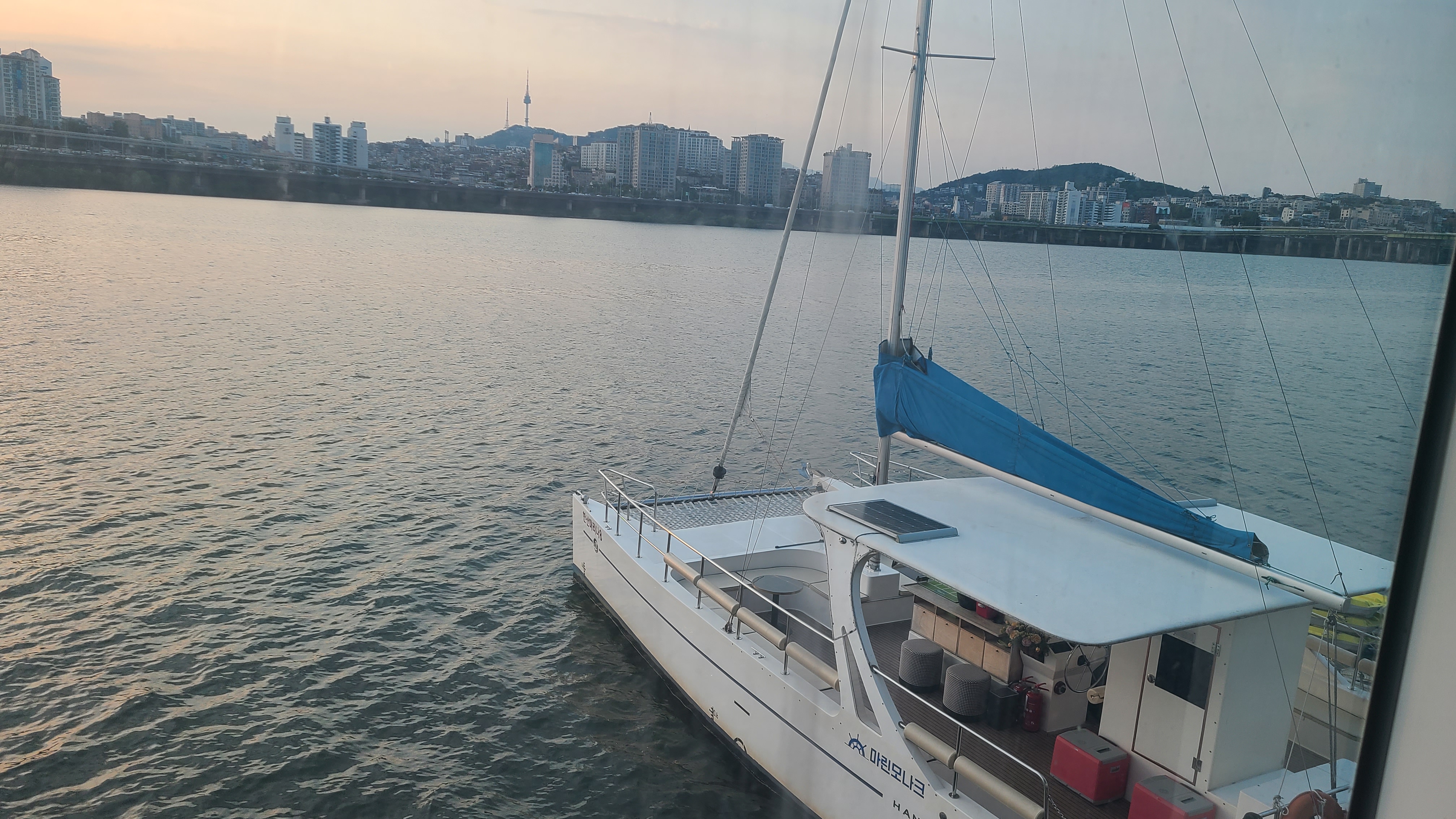 식사를 하는 내내 창밖으로 보이는 한강과 남산 뷰로 인해 내내 설레고 마음이 평화로웠다. 평소보다 더 많은 대화를 하면서 여유롭게 식사를 즐기며 연신 우리 집 식구에게 이런 시간을 준비해 줘서 고맙다고 했다. 창밖으로 보이는 요트를 보며 다음에는 한강 위에서 요트를 타고 우리 집 식구와 와인 한 잔을 즐기고 싶다는 생각이 들었다. 디저트까지 식사를 마치고도 7시를 꽉 채워서 자리에 앉아있다가 밖으로 나왔다.