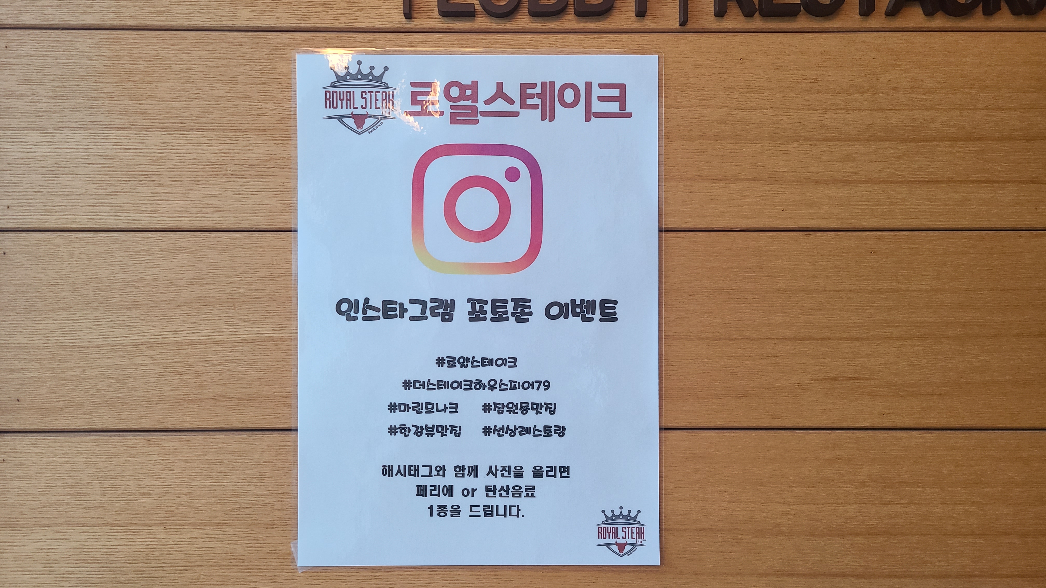 어느덧 출산을 45일 정도 남겨놓은 만삭의 임산부로 살고 있다. 오늘부로 출산을 위해 마지막 출근을 하고 출산휴가에 돌입했다. 매일 D-day를 세면서 기다리던 오늘이 드디어 왔다. '내 인생에 출산 휴가라니 이런 날이 오는구나.' 묘한 기분이 들었다. 업무 마무리를 할 즈음 짐을 챙겨주러 우리 집 식구가 회사로 왔다. 동료들에게 받은 아기의 선물과 짐을 들고 퇴근하면서 바로 한강 '더 스테이크하우스 피어 79 로열 스테이크'로 향했다. 아기가 태어나면 둘의 오붓한 데이트가 어려울 거란 생각에 임신 후기가 되면서 우리 집 식구와 자주 데이트를 하고 있다. 오늘은 한강에서 노을을 보며 저녁을 먹고 싶다는 나의 부탁(?)에 우리 집 식구가 뷰 맛집이라는 '더 스테이크하우스 피어 79 로열 스테이크'를 예약했다.