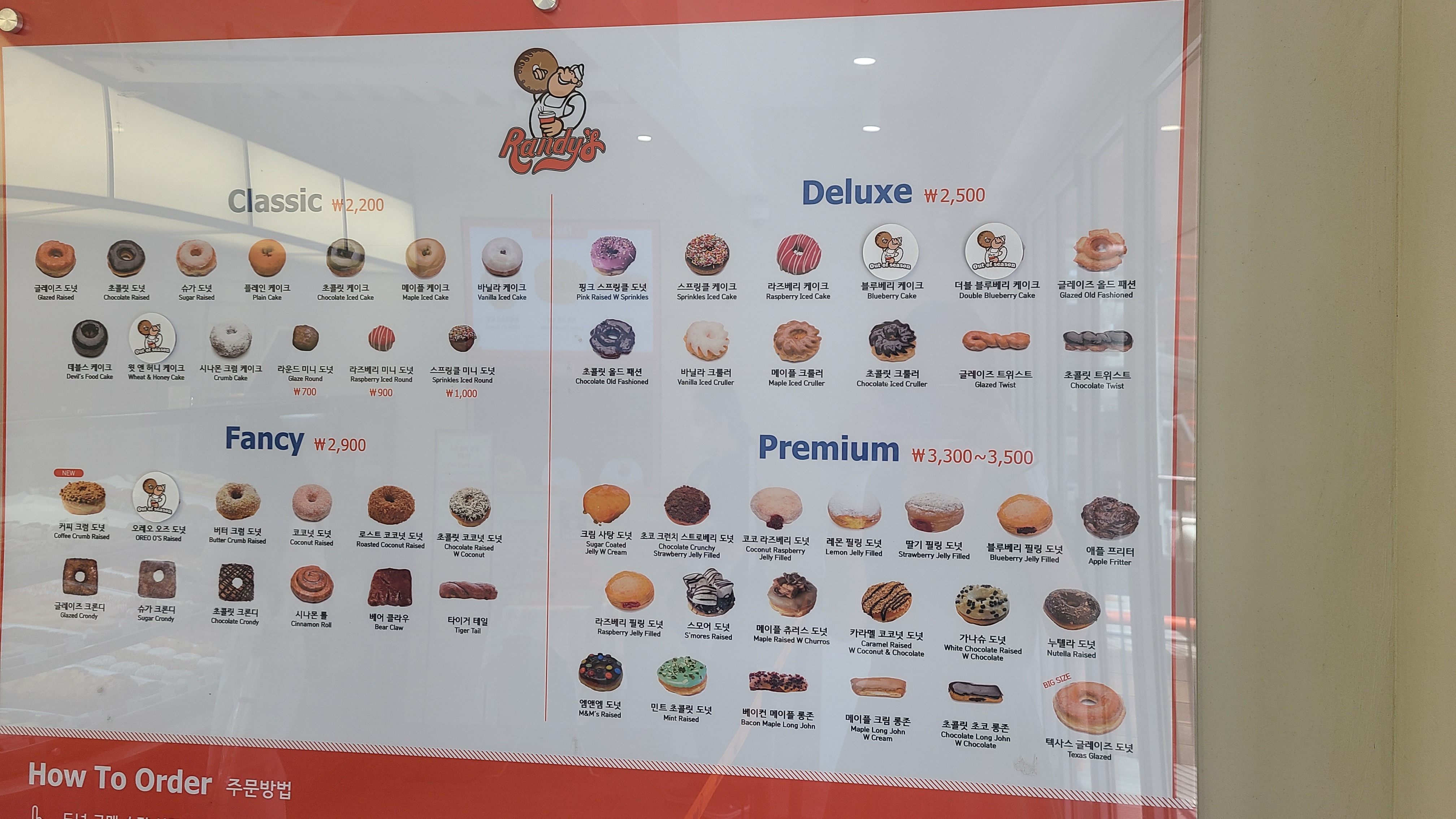 매장으로 들어가면 도넛 종류를 확인할 수 있는 QR코드와 Classic ∙ Deluxe ∙ Fancy ∙ Premium 나누어진 메뉴 안내판이 있었고, 아이언맨 피규어도 보였다. 주문은 도넛 구매 수량을 선택하고 포장상자 크기를 선택 후 원하는 도넛을 점원에게 이야기 한 후에 계산하는 형태로 진행된다. 우리 집 식구와 함께 먹을 생각에 도넛 구매 수량은 8개로 정하고 포장 상자는 소자로 2개에 나누어 달라고 요청했다.