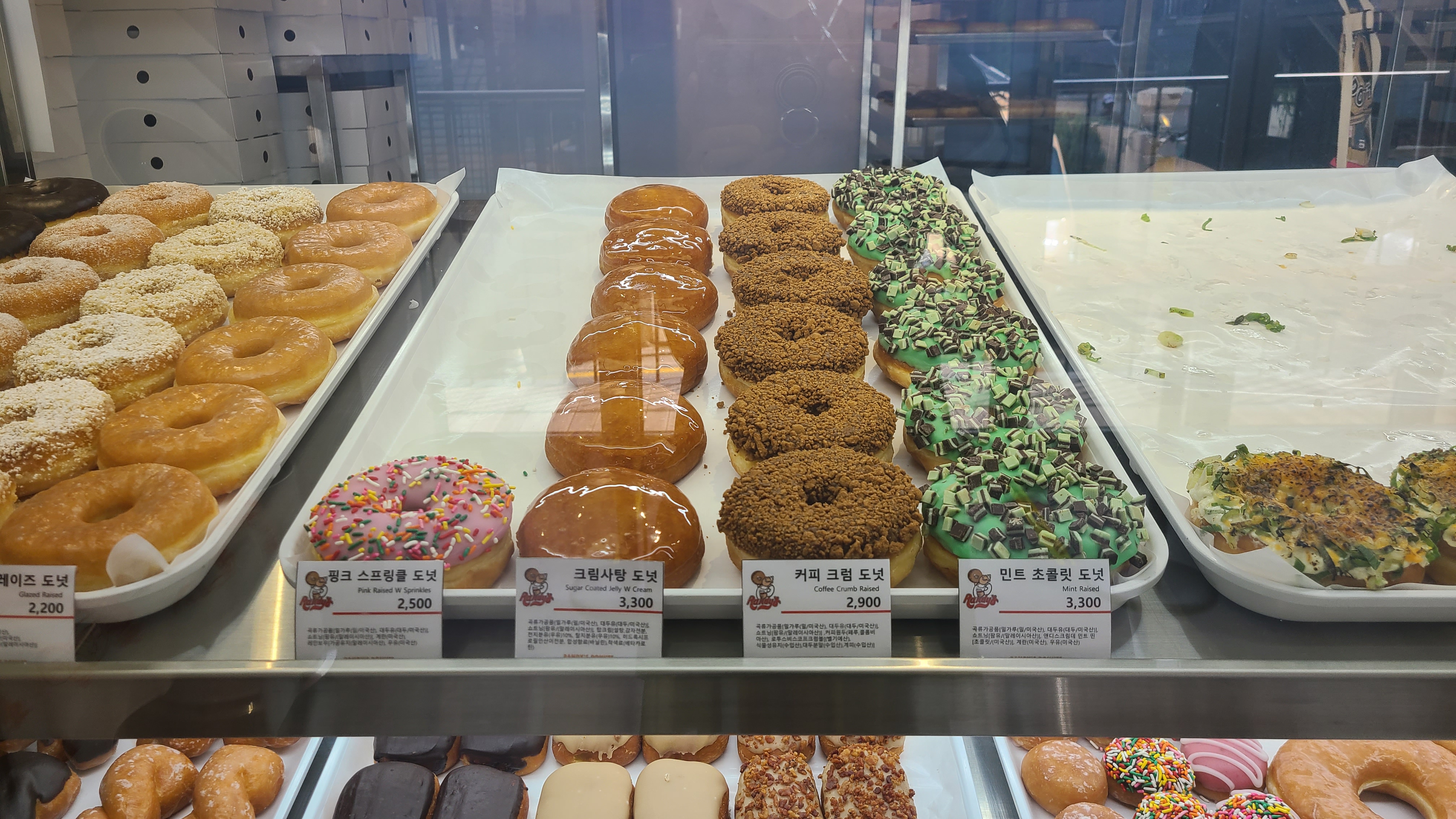 홈페이지 상에 주차가 불가능하다고 나와있었지만 매장을 방문해 보니 발렛 파킹이 가능했다. 평일 오후 1시 정도 방문하니 웨이팅도 없었고, 모든 종류의 도넛이 구매 가능했다.